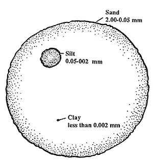 - Minerals (particles of material weathered from rock), divided by size into sand, silt and clay, makes up most of the volume of most soils.